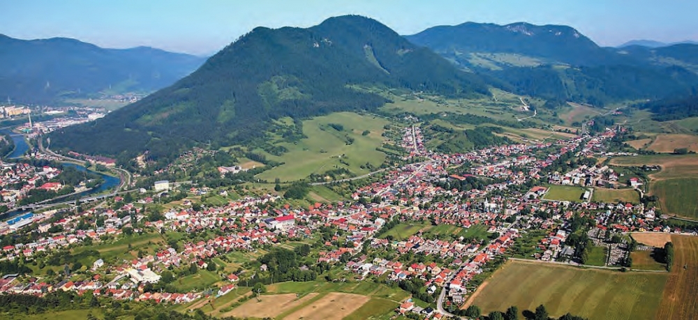 Celkový pohľad na obec z juhovýchodu v pozadí vrch Čebrať